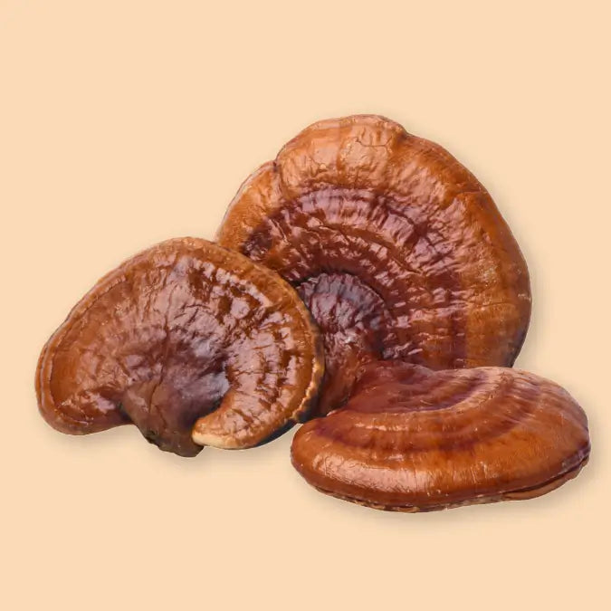 Our Reishi mushrooms, thriving both outdoors and indoors, are favored for their stress-reducing effects.