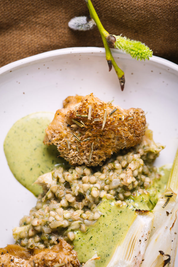 • 600 g lion’s mane mushrooms (2–3 large “discs”)