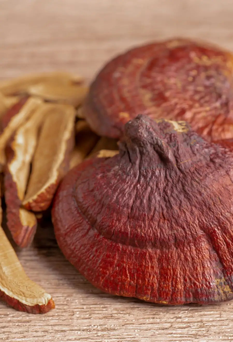 Reishi reduces stress and anxiety, with studies highlighting its sleep-improving effects. It's rich in polysaccharides and triterpenes, supporting the immune system and providing anti-inflammatory and antioxidant benefits, making it an all-encompassing health enhancer.