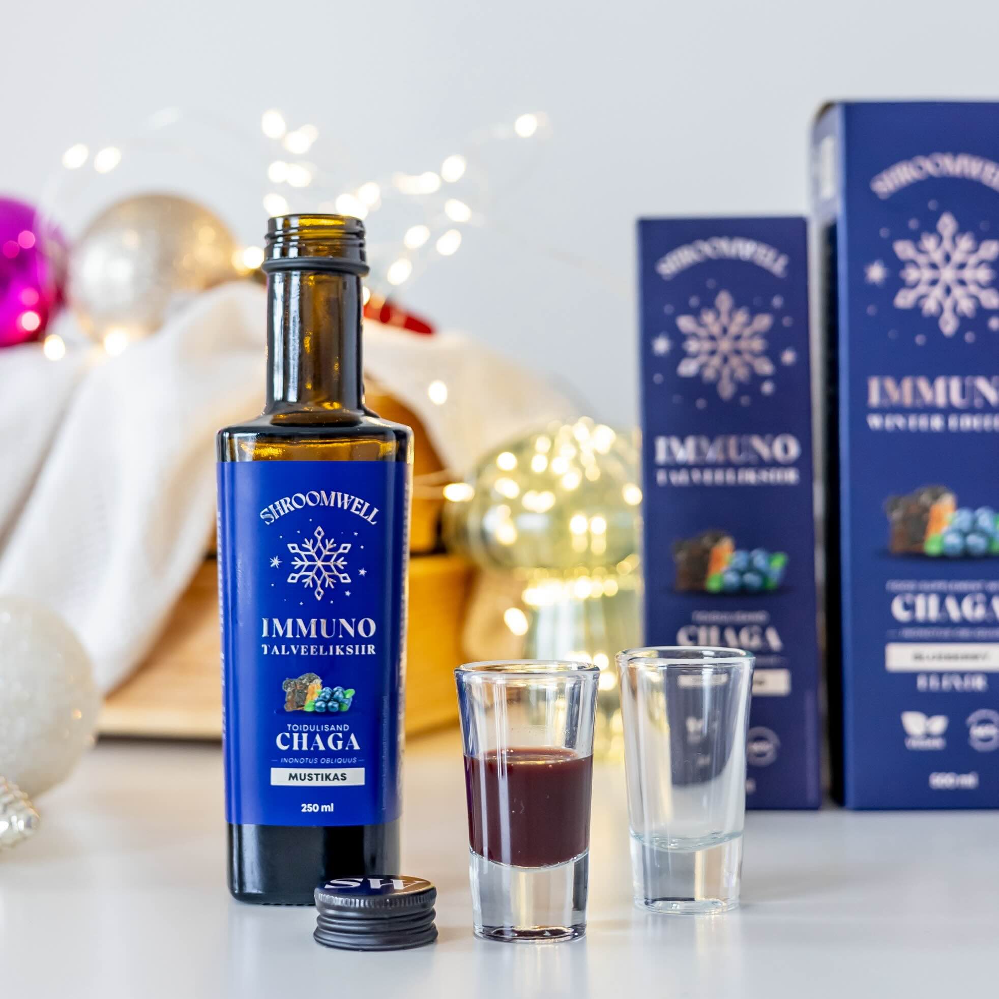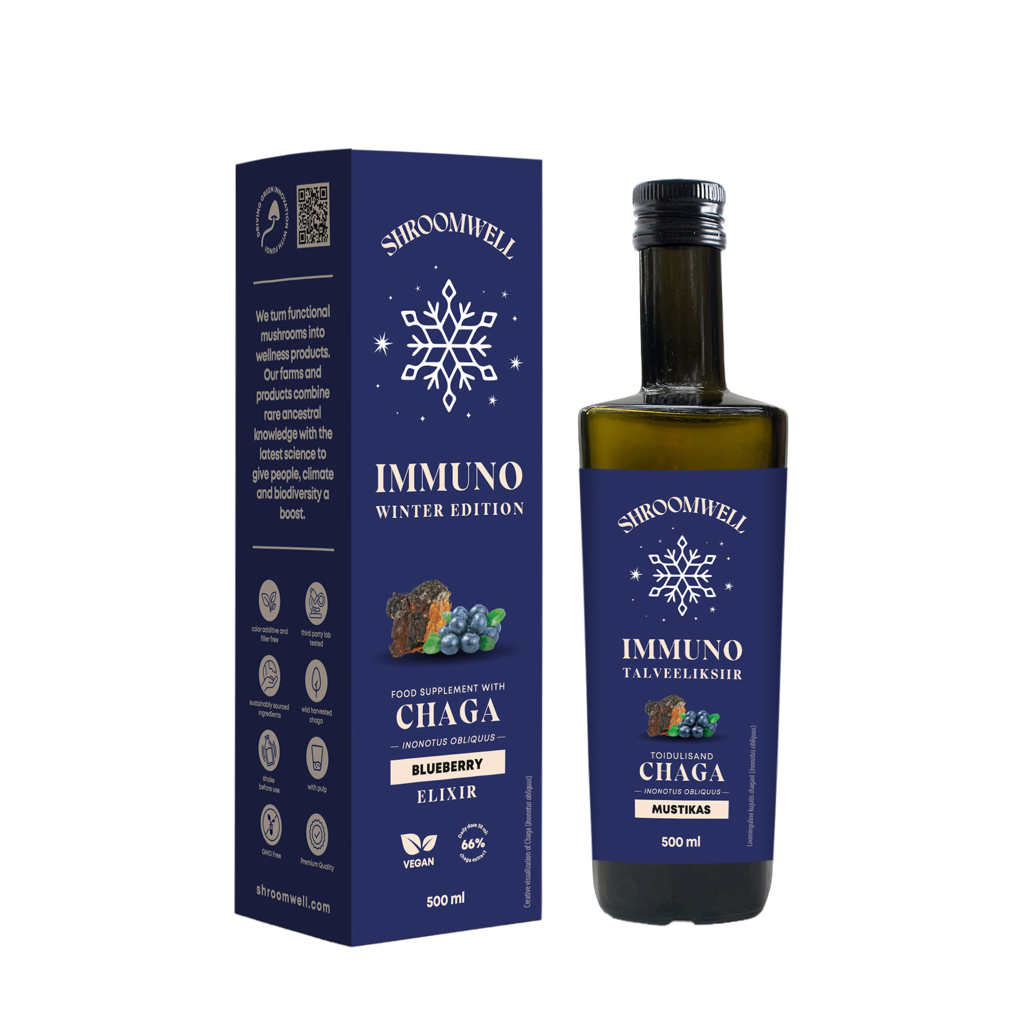 These specially made winter elixirs combine our local and powerful Nordic Chaga mushroom with the antioxidant-rich blueberries from Estonia for a holistic wellness experience.